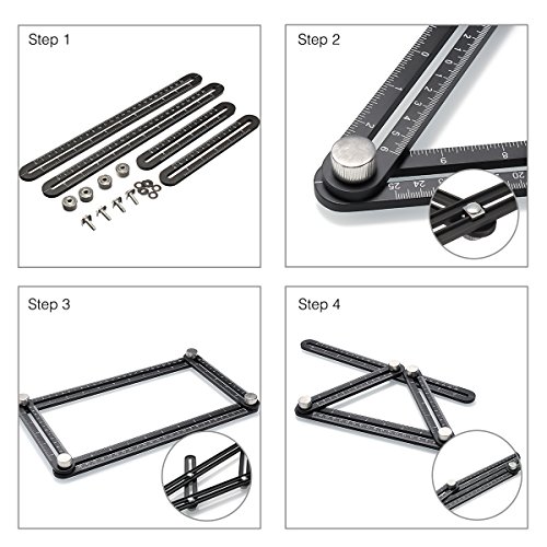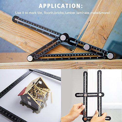 - HIGHLY VERSATILE – Multi-Angle Measuring Ruler slides and locks into any desired angles to save you time on repetitive measurements. The four-sided ruler mechanism slides and locks into any desired angle as a reusable stencil for endless applications.