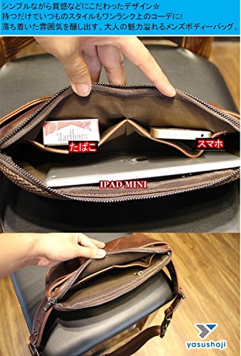 -. Title : yasushoji ボディバッグ ショルダーバッグ メンズ 斜めがけ レザー 防水 コンパクト