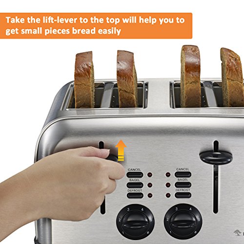 Key Features:High-Lift Lever:The toaster carriage pops up when toast are ready, our high lift lever helps you to get small pieces of bread out easily and avoid burning your fingers.