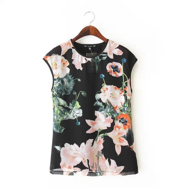 New Fashion Women Clothing  Short Sleeve O Neck Short T Shirt Summer Slim Casual Pullover Tops Floral Printed Casual Shirt