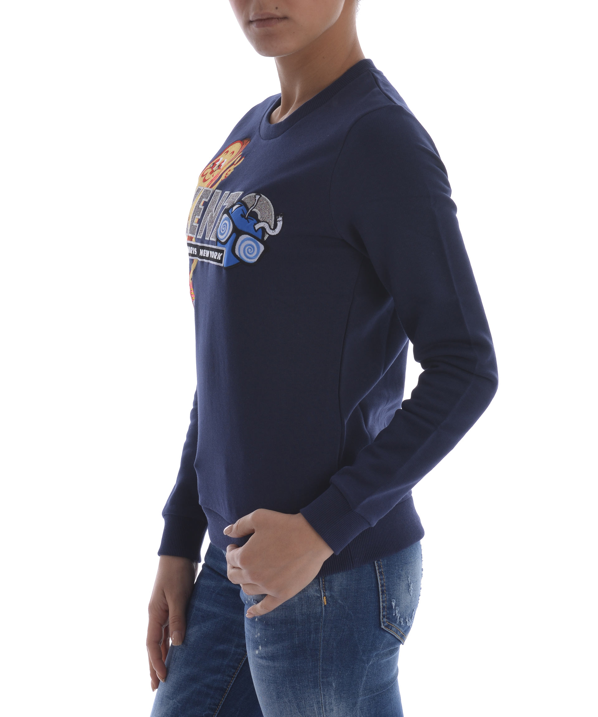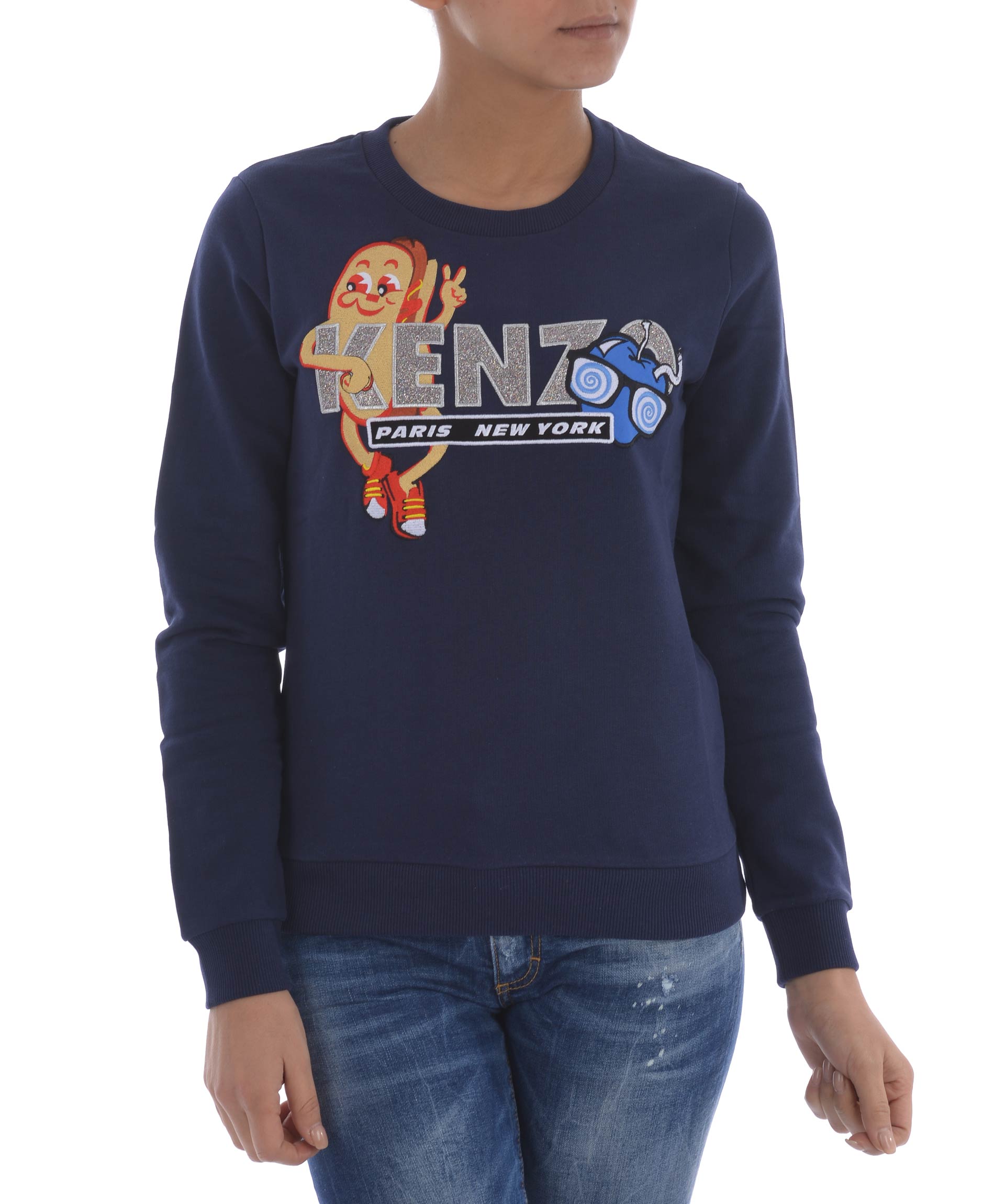 Hotdog Sweatshirt from Kenzo: Blue Hotdog Sweatshirt with round neck, straight hem, hotdog logo print on front, ribbed cuffs and hem