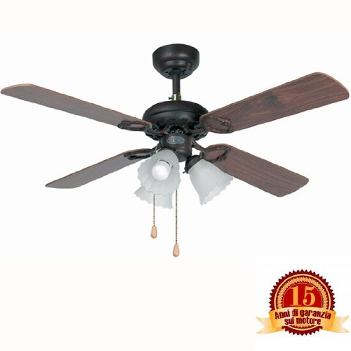 -. Feature : Deckenventilator mit Licht Lorefar Lisboa Faro 33102 mit integrierter Deckenleuchte Lampen 3xE27 max. 60 Watt nicht im Lieferumfang inbegriffen / 3 Geschwindigkeitsstufen 118-181-235 Umdrehungen pro Minute über Schaltketten steuerbar / Stromverbrauch 27-37-50 Watt je nach Geschwindigkeitsstufe / Sommer- und Winterbetrieb, Montage auch an schrägen Decken / Durchmesser 107 cm für Räume bis 13 m2, 4 Wendeflügel Farbe Mahagony-Nussholz, Deckenabstand 46 cm