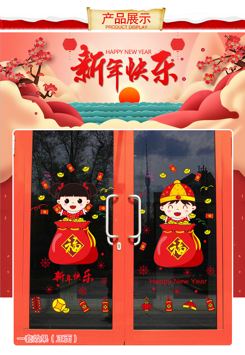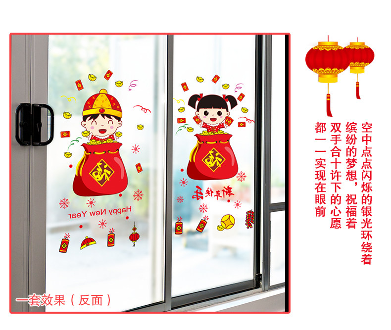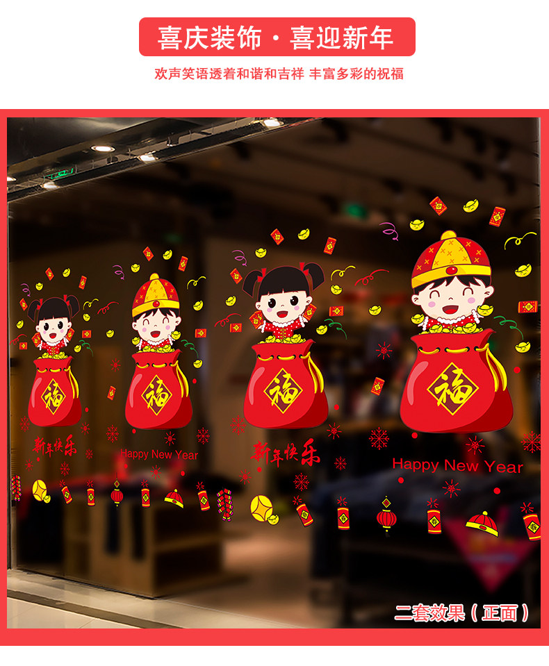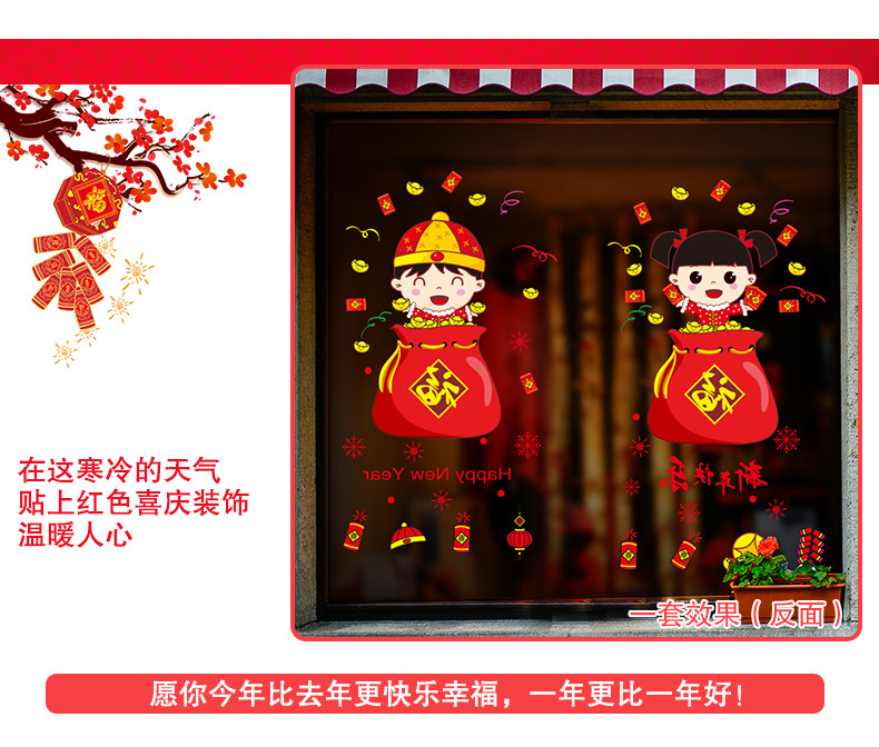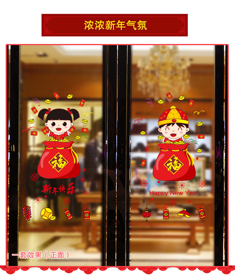 新年装饰品玻璃橱窗贴纸墙贴画春节过年娃娃门贴场景布置窗花