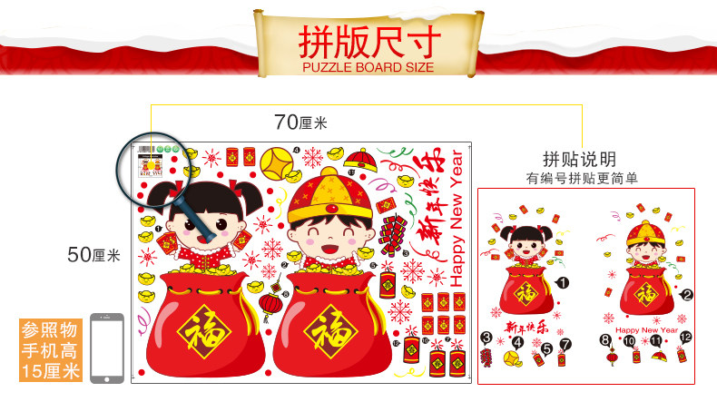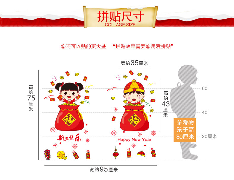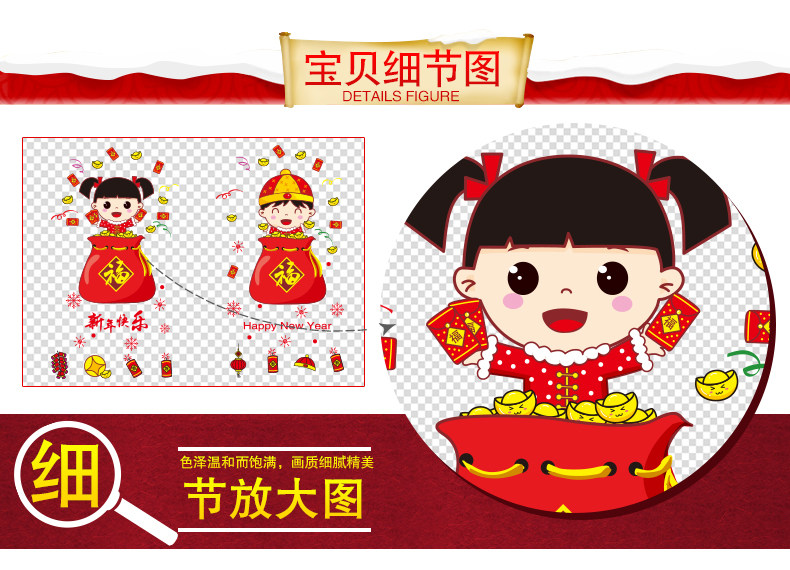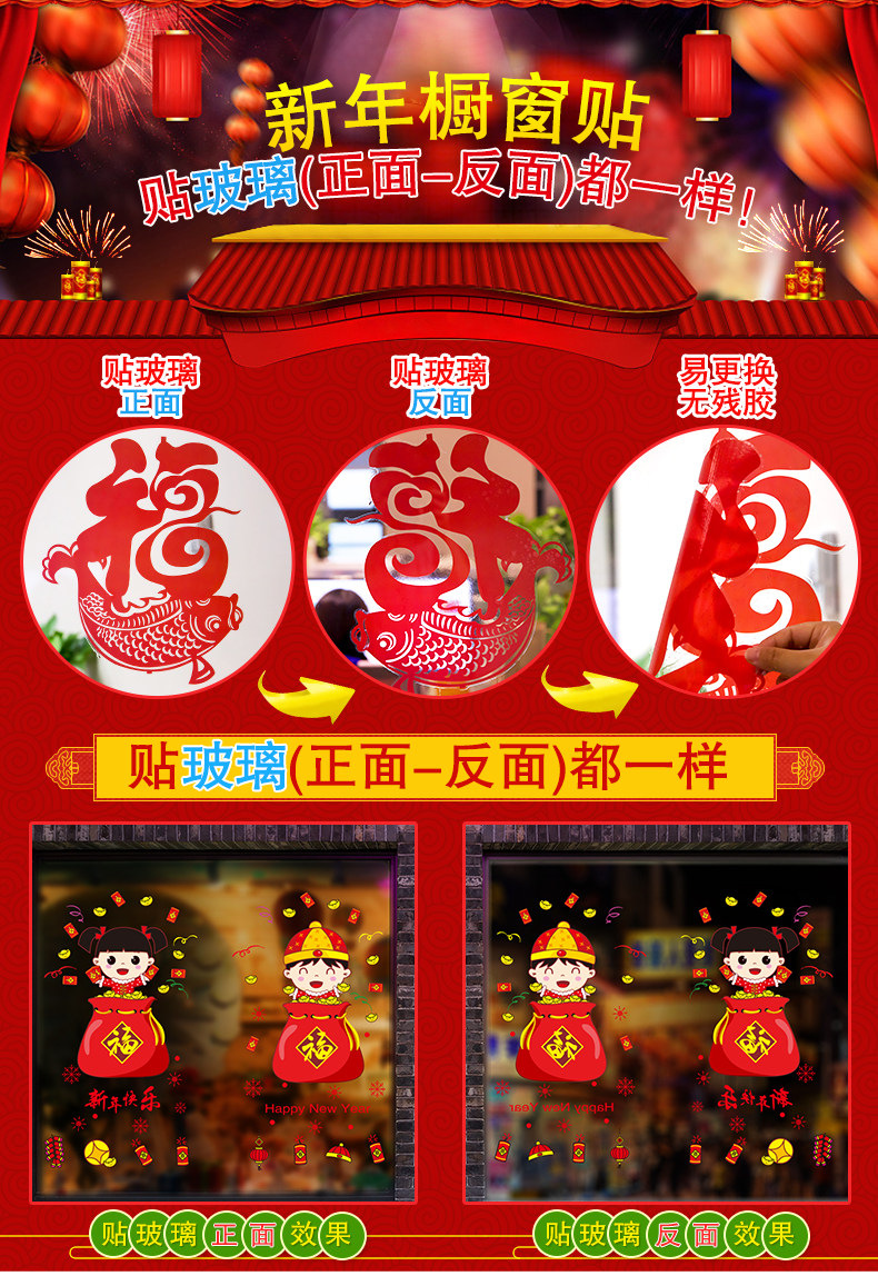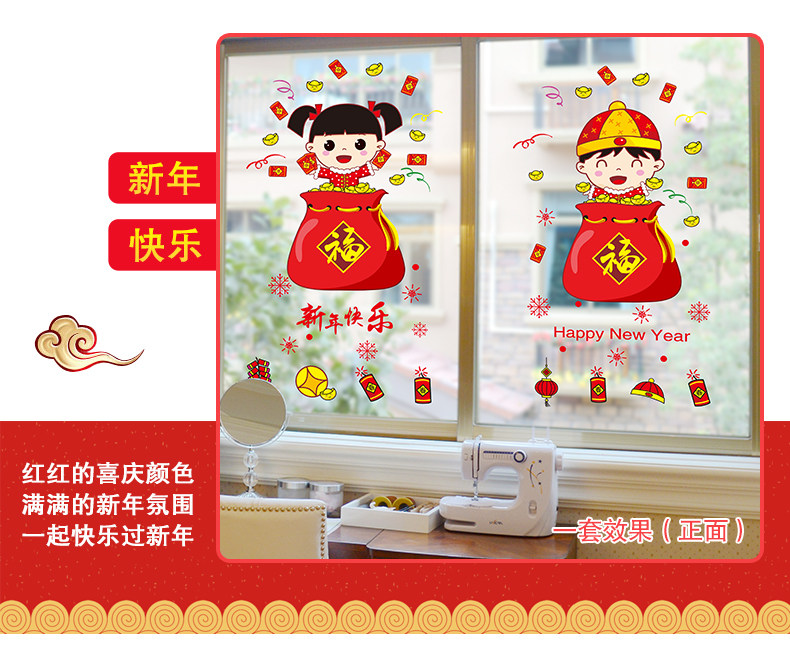 新年装饰品玻璃橱窗贴纸墙贴画春节过年娃娃门贴场景布置窗花