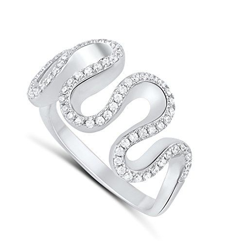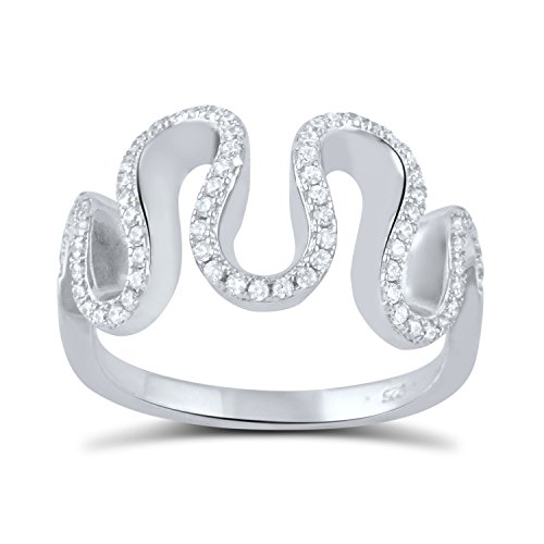 -. Title : Sterling Silver Simulated Diamond Abstract Wave Ring (Size 4 - 9)