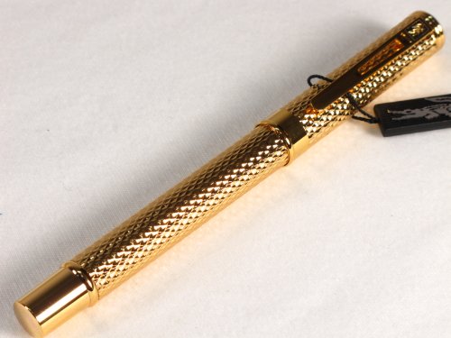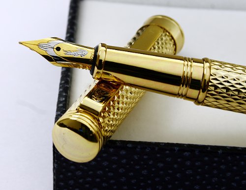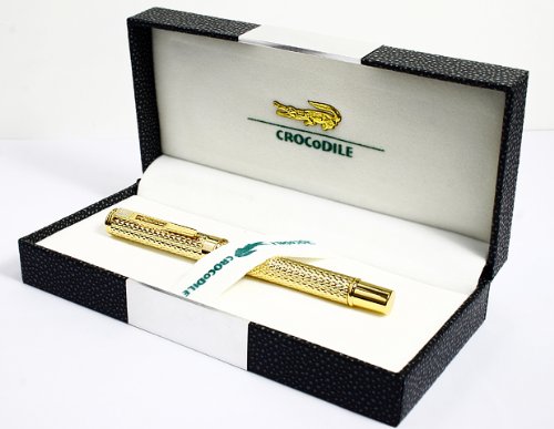 -. Title : Crocodile 22kgp Executive Golden Raised Fountain Pen with Push in Style Ink Converter