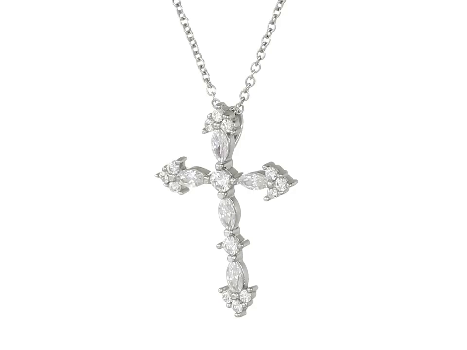 Platinum-Plated Sterling Silver Swarovski Zirconia Cross with Intricate Details Pendant Necklace, 16" + 2" Extender