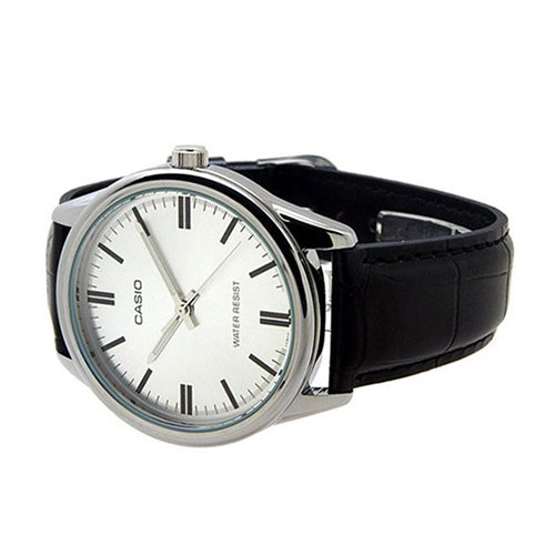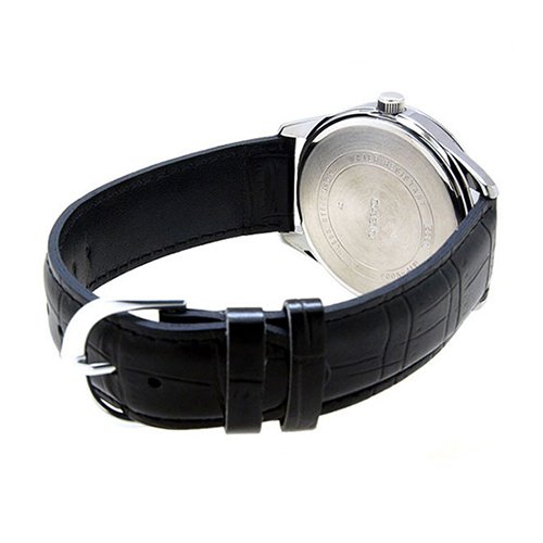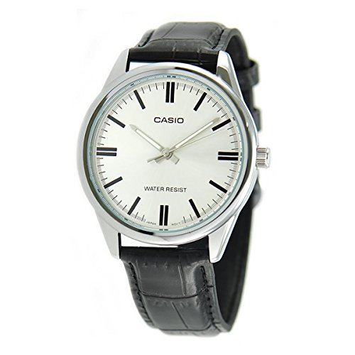 -. Title : Casio MTP-V005L-7A Men's Black Leather Dress Watch SilverDial