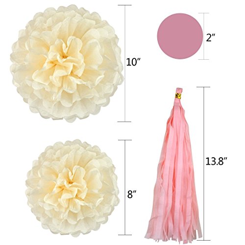 PINK AND GOLD COLOR COMBINATION – The tassels and paper flowers set contains 3 colors: gold, pink and cream. The lovely color combination will light up your party, and especially fits for girls’ birthday and baby shower.
