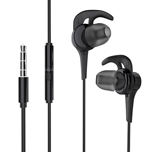 Headphones, Vomach Earhook Headphones In Ear Earbuds for Running Wired Earphones with Mic Cable Clip Included Black