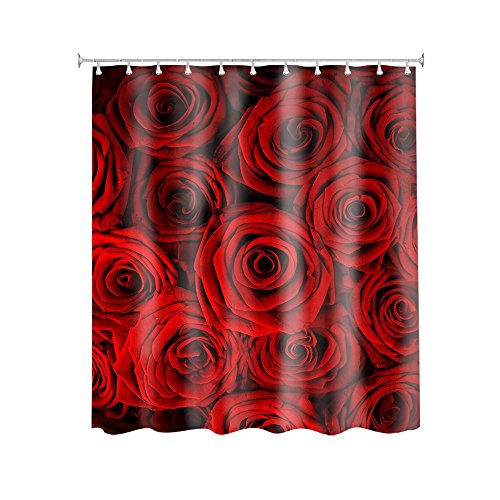 Red Roses Customize Waterproof Polyester Fabric Bathroom Shower Curtain 66*72 Inch