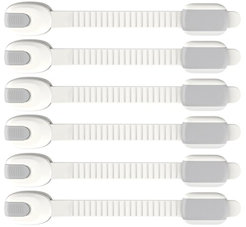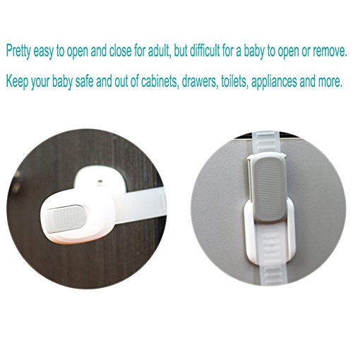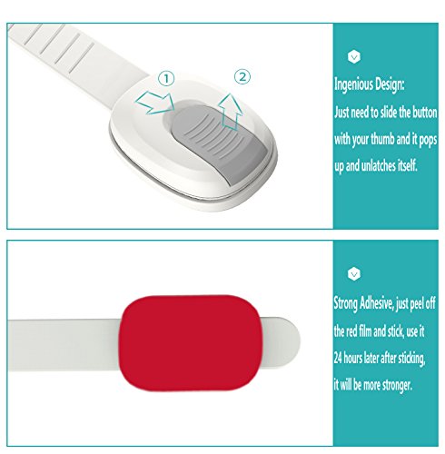 - Ingenious Design, Easy to Install: Adjustable child safety locks with flexible length strap, easy to attach and remove for an adult, adjust the flexible yet durable strap to the length you need, peeling the red film on the adhesive and press on the flat surface or corner that you need to keep your little one out of.