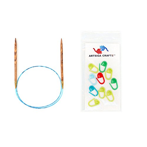 [Product Information]- Bundle includes 1 addi Olive Wood Circular 60-inch (150cm) Knitting Needle Size US 15 (10.00 mm) with 10 Artsiga Crafts Stitch Markers