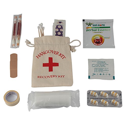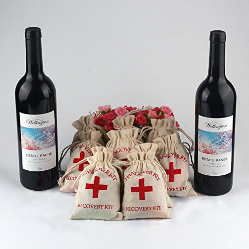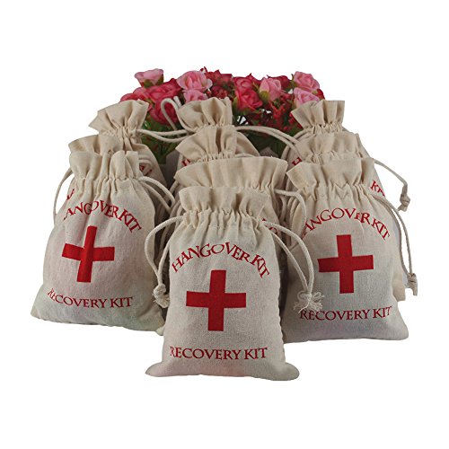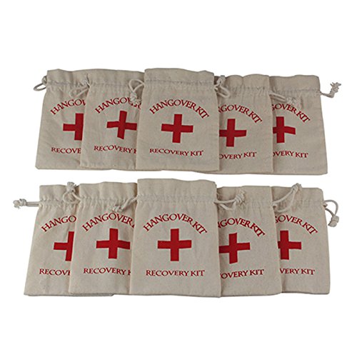 - ★ Packing list: 10pcs hangover kit bags (4 x 5.5inch); Classic red cross + hangover kit + survival kit printed on off-white cotton bag