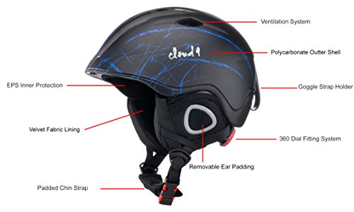 -. Brand : Cloud 9 Goggles -. Feature : PROTECTION: Dual construction system, EPS inner mold provides a light material for comfort combine with an outter Polycarbonate shell that is much stronger than ABS Plastic and and has a high impact resistance. / COMFORT: Washable Internal fabric velvet lining combined with removable ear padding that helps enjoy outdoor activites for long periods of time. Ventilation system helps bring cool air in and warm air out. / ADJUSTABILITY: 360 Dial Fitting System delivers an easy customizable helmet. Unwanted pressure can be eliminated with a turn of a knob. / COLOR: Matte finish provides anti-glare when hitting the slopes. / Newbee Fashion® provides superb customer service with affordable high quality products. 30-day Money Back Guarantee! Please contact us directly if you have any issues with your order, we strive for customer satisfaction. -. Label : Cloud 9 Goggles -. Manufacturer : Cloud 9 Goggles -. ProductGroup : Sports -. ProductTypeName : OUTDOOR_RECREATION_PRODUCT -. Publisher : Cloud 9 Goggles -. Studio : Cloud 9 Goggles -. Title : Cloud 9 - "Smash Up" Unisex Adult Retro Matte Color Outdoor Snow/Sport Biking Snowboarding Ski Helmet Light Weight Design Matte Finish with Adjustable Fit System