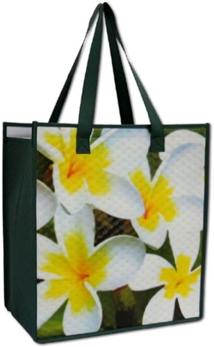 K Chang Tote Bag Insulated Tropical Plumeria Small Black, White, Yellow Small