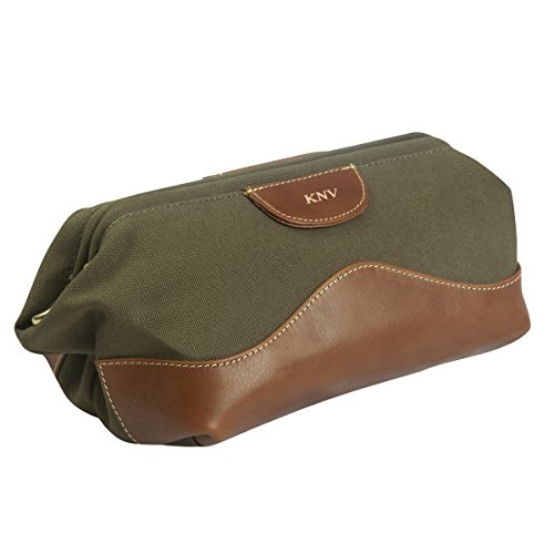 Studio : JDS Publisher : JDS Product Description Packing your bags for an out-of-town trip can only be enhanced with this handsome,personalized Borello Travel Dopp Kit. Beautifully crafted from Cognac distressed leather anddurable forest green canvas, the stylish travel gear can hold all the personal care items that youso appreciate on the go. Unzipping the wide opening reveals a high-quality, tear-resistantpolydrill lining. As a gift for him, the debossed personalization feature on the leather trim adds that extra sense of thoughtfulness when you want to make him feel pampered. This handy personal care bag for men can also serve as a generous personalized gift for the executive on the go, or a work anniversary for that dedicated employee. Item Specifications: Personalized with 3 initials of gold debossing into the leather in the order of First, Middle, Last. Ample storage within large zippered compartment for numerous care products Borello travel dopp kit measures 10" (w) x 6" (h) x 5" (d) 0