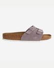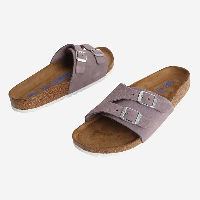 라이트바이올렛 컬러에 버클장식으로 포인트를 준 슬리퍼 입니다. 발의 형태에 이상적으로 디자인된 풋베드로 편안하게 착용할수있는 아이템 입니다.