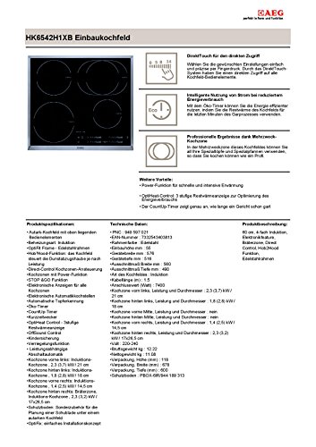 Direct Control Bräterzone Hob2Hood Funktion Brand : AEG Item model num : HK6542H1XB MPN(PartNumber) : 7332543403813 EAN : 7332543403813 Product Dimensions(LxWxH) : 52x58x6cm ; 11898 g