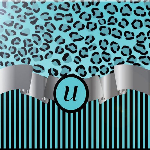 Rikki Knight RK-6intilec-2417 6" X 6" Letter "U" Sky Blue Leopard Print Stripes Monogram Design Ceramic Art Tile