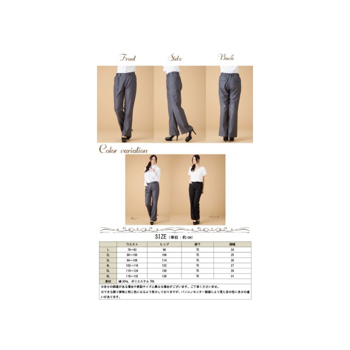 원본상품명: (ゴルドジャパン)Goldjapan 大きいサイズ レディス ボトムス パンツ ロング丈 長め ズボン ハイウエスト 股上深め ウエストゴム 4L XXXL 3XL 17 ブラック
