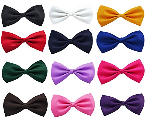 Glittermall Solid Color Adjustable Boys Kids Bow Tie Collection - 12 Mixed Color/12pcs