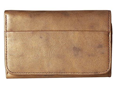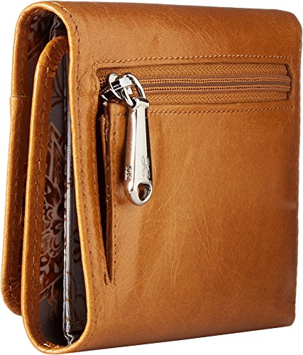 This Vintage Jill Tri Fold Wallet by Hobo is perfect for those women who love to stay organized but hate big bulky wallets. Made from top-grain genuine leather, this wallet has been tumbled for a unique, broken-in vintage look. Open the snap closure to reveal 7 credit card slots, 3 slip pockets, 1 bill slot, and an ID window w/thumb glide. It's small design is perfect to drop into your crossbody bag but also opens flat so you can store all your most needed cards and cash with ease. Measures 5.25" x 3.5" x 0.75".Feature