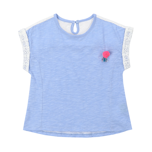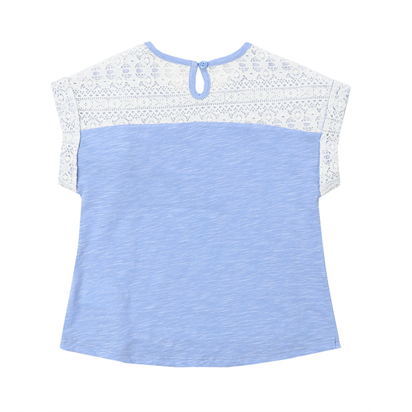 상세설명-면소재로 착용감이 가볍고 부드러우며 화이트레이스 배색이 되어 여성스러운 느낌의 티셔츠입니다.