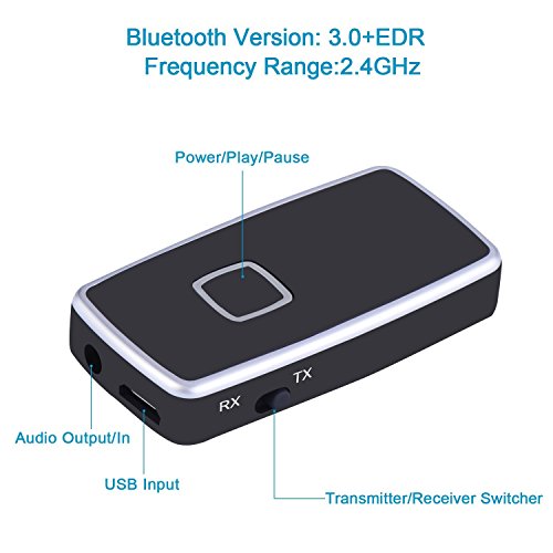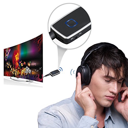 -. Binding : Electronics -. Brand : Generic -. EAN : 0709818641473 -. Feature : Transmitter Mode (TX): Transforms any device (e.g. TV, computer, MP3 player, PSP) with 3.5mm audio-out jack into a Bluetooth-capable music streaming solution with no additional drivers required / Receiver Mode (RX): Turns any ordinary speaker system (with 3.5mm audio-in jack) into Bluetooth-enabled music streaming solution with no additional drivers required / 2-in-1 Bluetooth Transmitter/Receiver can do it all - as a receiver and as a transmitter / Battery life for TX mode: about 11 hours; battery life for RX mode: about 6 hours / Compact and portable design with built-in battery for use on the go -. Label : Generic -. Manufacturer : Generic -. PackageQuantity : 1 -. ProductGroup : PC Accessory -. ProductTypeName : NETWORKING_DEVICE -. Publisher : Generic -. Studio : Generic -. Title : Wireless Bluetooth Stereo Music Transmitter and Audio Receiver 2-In-1 Adapter for Headphone, TV, PC, iPod, Car Stereo, Mp3/Mp4 and More -. UPC : 709818641473