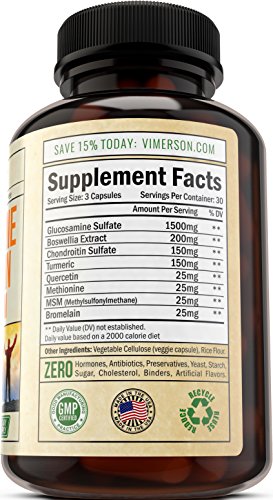 Glucosamine Chondroitin Turmeric MSM Boswellia - Joint Pain Relief Supplement - Best Anti-Inflammatory & Antioxidant Pills by Vimerson Health for...