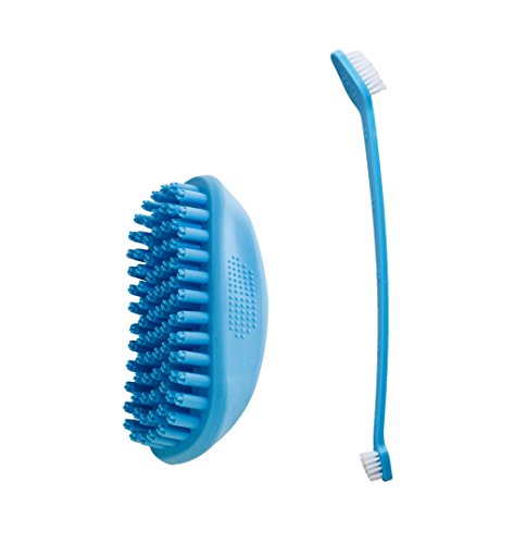 FREE TOOTHBRUSH goes with PET MASSAGE THERAPY BRUSH FOR BATHING AND SHEDDING for Bath Care and washing and dehedding rubber Brush tool for any size of animal - small, medium, large dog cat ferret etc.