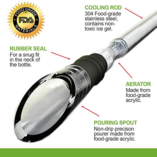 - Feature : ICELESS WINE CHILLER BRINGS WINTER to YOUR WINE BOTTLE - Imagine enjoying ice cold wine even when you're outside in the blazing Summer sun, or maybe while you're on a boat or walking through the woods. That's the power of our high quality wine pourers. Just a short while in the freezer, and it keeps bottle red and white wine perfectly chilled. This amazing wine chiller stick stainless steel is what you'v been missing all along. Now you can enjoy chilled wine all the time. / BEST WINE CHILLER POURER WITH CHILL ROD - Our wine aerator chiller stick set compares to chef aaron wine chiller pourer, but it's actually affordable! So you an spend less, without compromising quality. You can pay for fancy brand name, or you can pay a fair price for the best chiller stick wine decanter set on the market. Just check out all our Five Star Customer reviews. They tell the story! / PORTABLE SINGLE BOTTLE ICE WINE COOLER - You can take your wine with you to outdoor events and it will last for hours. Our wine chiller stick will leave you in chills, and is a quality piece to our wine aerator pourer kit. Your friends may get a little jealous when they see you enjoying perfectly chilled wine with full flavor. You can let them take a sip and see what they're missing. It's up to you if you want to let them know, or keep it our little secret ;) / PERFECT FOR TRAVEL and EASY OPENING - with a wine chiller bag, wine chiller stick cucina casa, our wine chiller stick and wine chiller aerator and pourer fit snuggly in its sweet little travel pouch and are perfect for trips! You can drink chilled, aerated wine without lugging a min-fridge with you. How awkward and would that be? ;) That's why our stainless steel wine stick with aerator is right on time to save the day with flavor and chill. / MAKES A PERFECT WINE ACCESSORY GIFT - It's a perfect gift for weddings, engagement parties, and more! And no worries, our wine chiller stick is fda approved. A wine chiller aerator of this caliber also makes the best gift for wine enthusiasts and true wine lovers. Anyone who truly loves wine will absolutely be ecstatic over this wine aerator and wine chiller stick set.