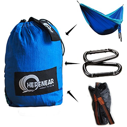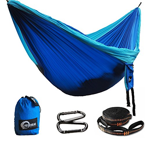 Herenear Double Camping Hammock - Portable Lightweight Nylon Parachute Hammock with Tree Straps and Carabiners for Camping Hiking Backpacking Travel Beach Yard, 118"(L) x 78"(W)