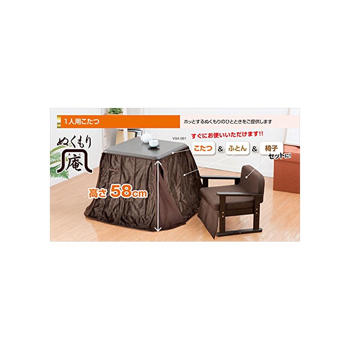 원본상품명: 山善(YAMAZEN) 一人用こたつ(58cm正方形) 3点セット(こたつ布椅子) 「ぬくもり庵」 VGA-582(DB)