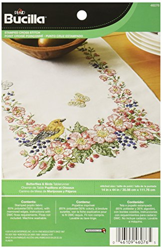 Bucilla Stamped Cross Stitch Table Runner (14 x 44-Inch), 46076 Butterfly & Birds