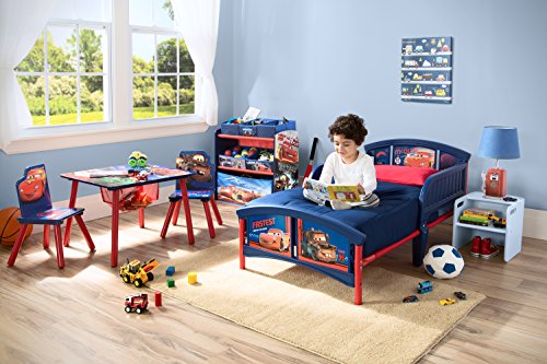 ReleaseDate : 2016-03-08 Studio : Delta Children Publisher : Delta Children Binding : Baby Product Product Description Add an extra element of fun to your little one's bedroom with this colorful Disney/Pixar cars plastic toddler bed from delta children. Featuring colorful decals of lightning McQueen and his best pal, tow mater, this sturdy bed is outfitted with guardrails rails for your child's safety. 0