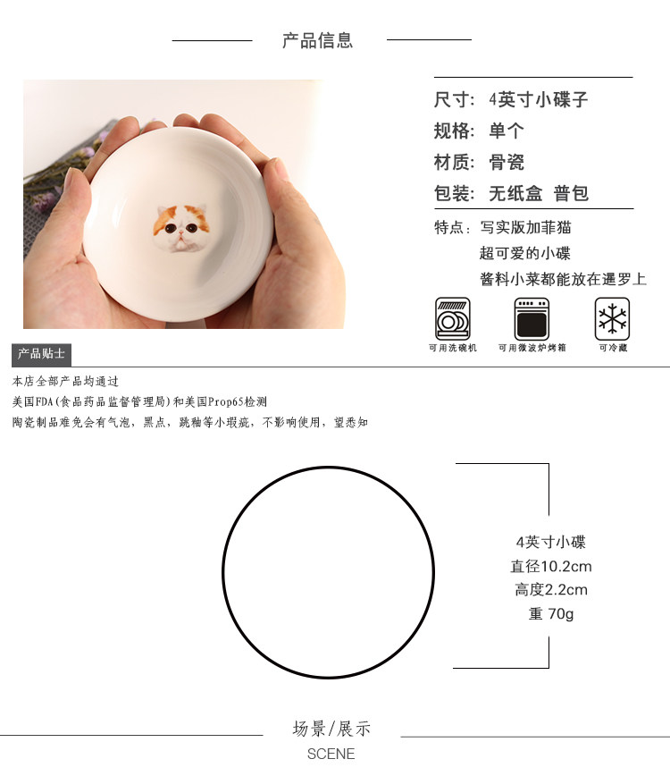创意加菲猫陶瓷小碟子餐具醋碟酱油碟调味碟骨碟菜碟创意小吃盘子