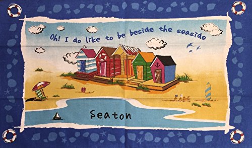 -. Feature : 100% Cotton Tea Towel / Measures: 77cm x 47cm approx / "Oh I do like to be beside the sea" ~ Typically English / Amusing Novelty Souvenir SEATON (Devon) In ENGLAND Tea Towel