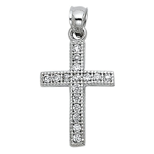 -. Binding : Jewelry -. Brand : The World Jewelry Center -. Department : womens -. Feature : Pendant Size : 18 mm x 15 mm / Guaranteed 14k Real Gold and "14k" Stamped / NO gold plated or filled / "NO Question Asked" 30-day Return Policy. / Promptly Packaged with Free Gift Box -. ProductGroup : Jewelry -. ProductTypeName : FASHIONNECKLACEBRACELETANKLET -. Title : 14k White Gold CZ Religious Cross Pendant with 0.8mm Box Link Chain Necklace