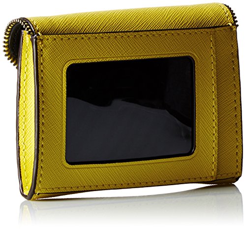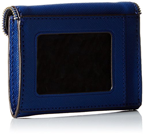 -. Feature : Envelope wallet featuring zipper-trimmed fold-over flap with metallic logo plate at front / Pockets: 1 interior slip, 1 interior zip, 1 exterior, 1 ID window, 1 card slot