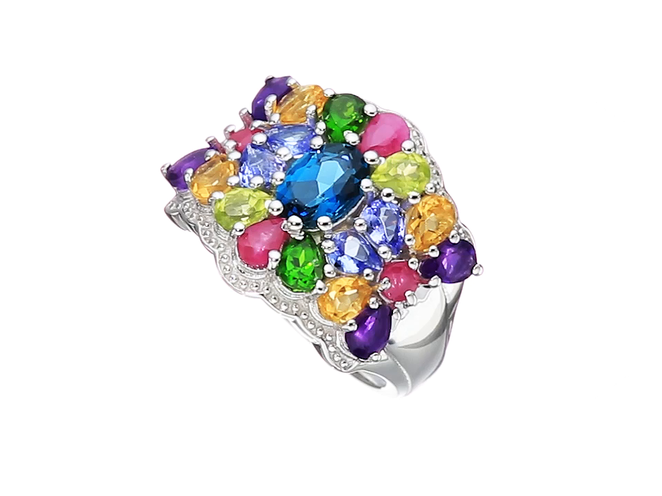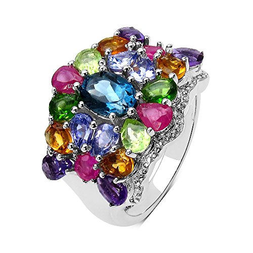 Genuine Multi-Stone .925 Sterling Silver Ring, Size 7