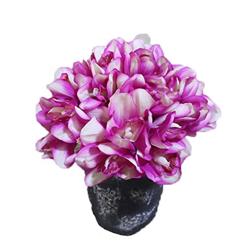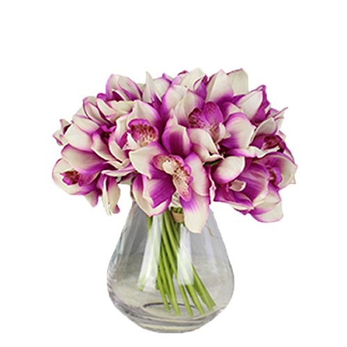 12 PCS High Quaulity Latex Real Touch Cymbidium Orchid Artificial Flower Bouquet for Wedding Holiday Bridal Bouquet Home Party Decor bridesmaid (Purple)