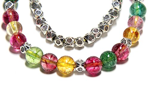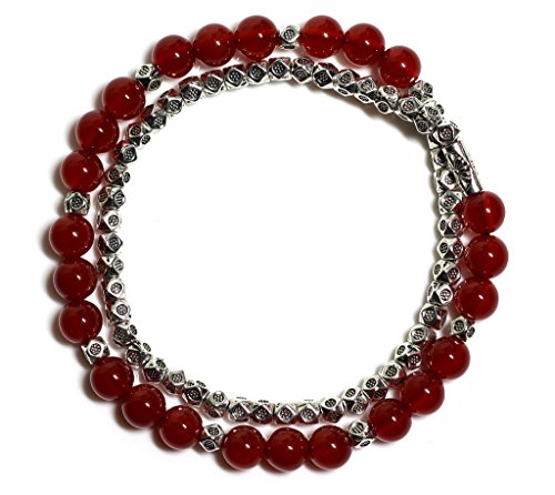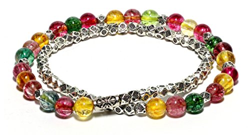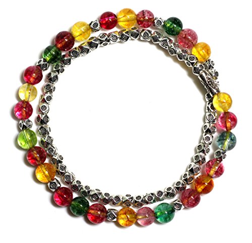-. Title : Raviga Handmade 6MM Gemstone Bead Double Wrap Bracelet with Silver Tone Alloy