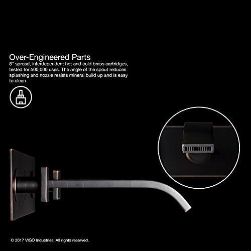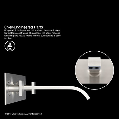 -. Feature : 3-hole wall-mount installation with 7 7/8 centers / Ideal for use with vessel sinks / Solid brass construction with a chrome and brushed nickel finish / Free embossed VIGO cutting board included / Contemporary, angular design with flat, elongated spout