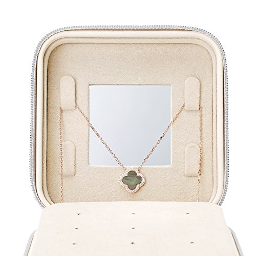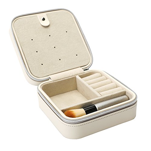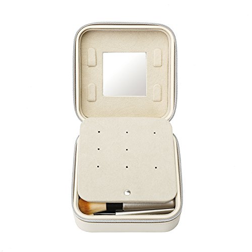-. Feature : *Portable and Light:same size to a coin,101 * 101 * 47.5mm,easy carry for travel(including brush and mirror) / *PU Material: Deluxe synthetic leather exterior(not genuine leather but premium synthetic PU leather)+Velvet lining+High Quality flannel interior / *Large capacity storage: perforated earrings, bracelets, hairpins, earrings, necklaces, rings, perforated earrings, bracelets, brooches and other jewelry collection. Note: jewelry, jewelry and other accessories are not included. / *Elegant Outlook:Simple and compact design with elegant outlook and could be used to storage collective / *Best Gift Choice:Fashion, comfortable, white Valentine's Day, birthday, Mother's Day, Christmas and other gifts, she is most suitable for mother, wife, daughter, classmates, lovers, friends, the best gift
