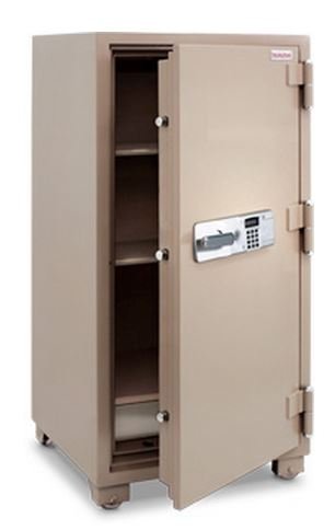 -. Feature : Two Hour Fire Safe Combination Dial Lock / All Steel Construction / Impact rating, immediately after the heating test the safe was dropped from a height of 30 feet and / Battery operated electronic lock protected by an internal sP.R.Ing loaded relocking device.
