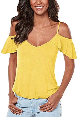 -. Title : Womens Cold Shoulder Ruffles Sleeve Crisscross V Back Blouse Tee Shirts
