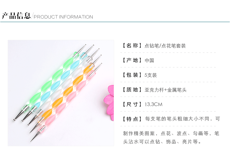 way DOTTING Pen Marbleizing Tool Nail Art Dot Paintset of 5pcs nail art dotting tools with 2 ends