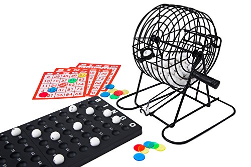 - Feature : Complete set with ball dispenser / Fun for the whole family / Have a weekly game night / Includes metal bingo cage, 75 numbered balls, master board, 18 double sided bingo cards, 150 bingo chips and instructions / Recommended for children 7 years of age and older