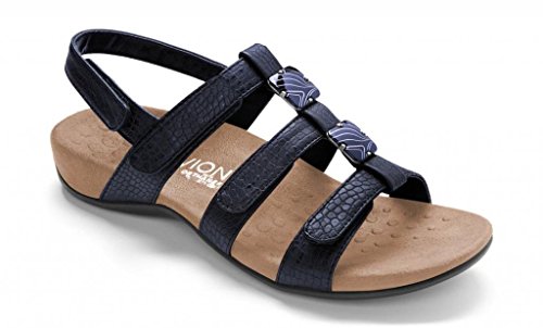 Studio : Vionic Publisher : Vionic Binding : Shoes Product Description Treat your oh-so-deserving feet to the relaxing comfort and breezy style of the popular Vionic with Orthaheel Technology Amber sandal. Designed to alleviate the pain and discomfort associated with a number of common foot ailments, this women's sandal is offered in a selection of natural cork and synthetic uppers, with four points of adjustability to ensure a precise, secure, accommodating fit. Podiatrist designed and recommended by Dr. Andrew Weil, the biomechanical orthotic footbed is topped with soft microfiber, dotted for grip, and features cradling arch support and a deep heel cup; Tri-Planar Motion Control reduces pronation, restoring the foot to its natural position for greater comfort and proper alignment. The APMA-accepted Vionic with Orthaheel Technology Amber sandal has a rubber sole with a botanic-patterned tread for reliable traction and durable wear. Fit tip: This style is available in whole sizes only. If you wear a half size, we recommend ordering down: For example, if you normally wear an 8.5, order a size 8. 0